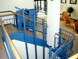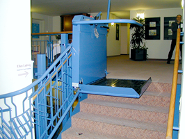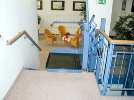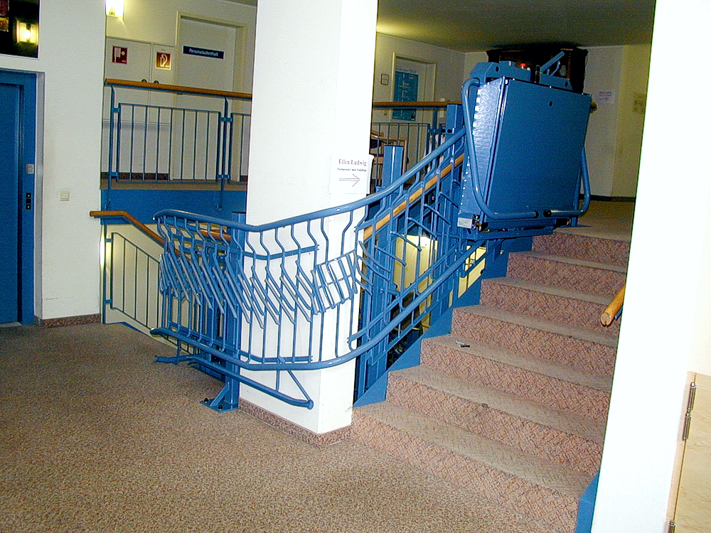 Treppenlift zur Beförderung von Rollstuhlfahrer im Gymnasium in Senftenberg.