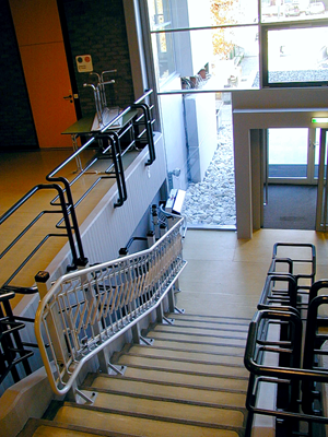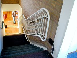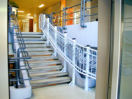 Liftführung bei einer Treppen mit Zwischenpodest.