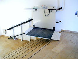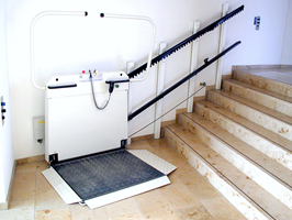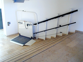 Treppenlift im Rathaus Frankfurt (Oder). Auch kurze Höhenunterschiede müssen berücksichtigt werden.