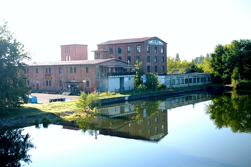 Von der Stirnseite blickt man direkt auf den Oder-Spree-Kanal, Höhe Einfahrt Mielenz-Hafen.